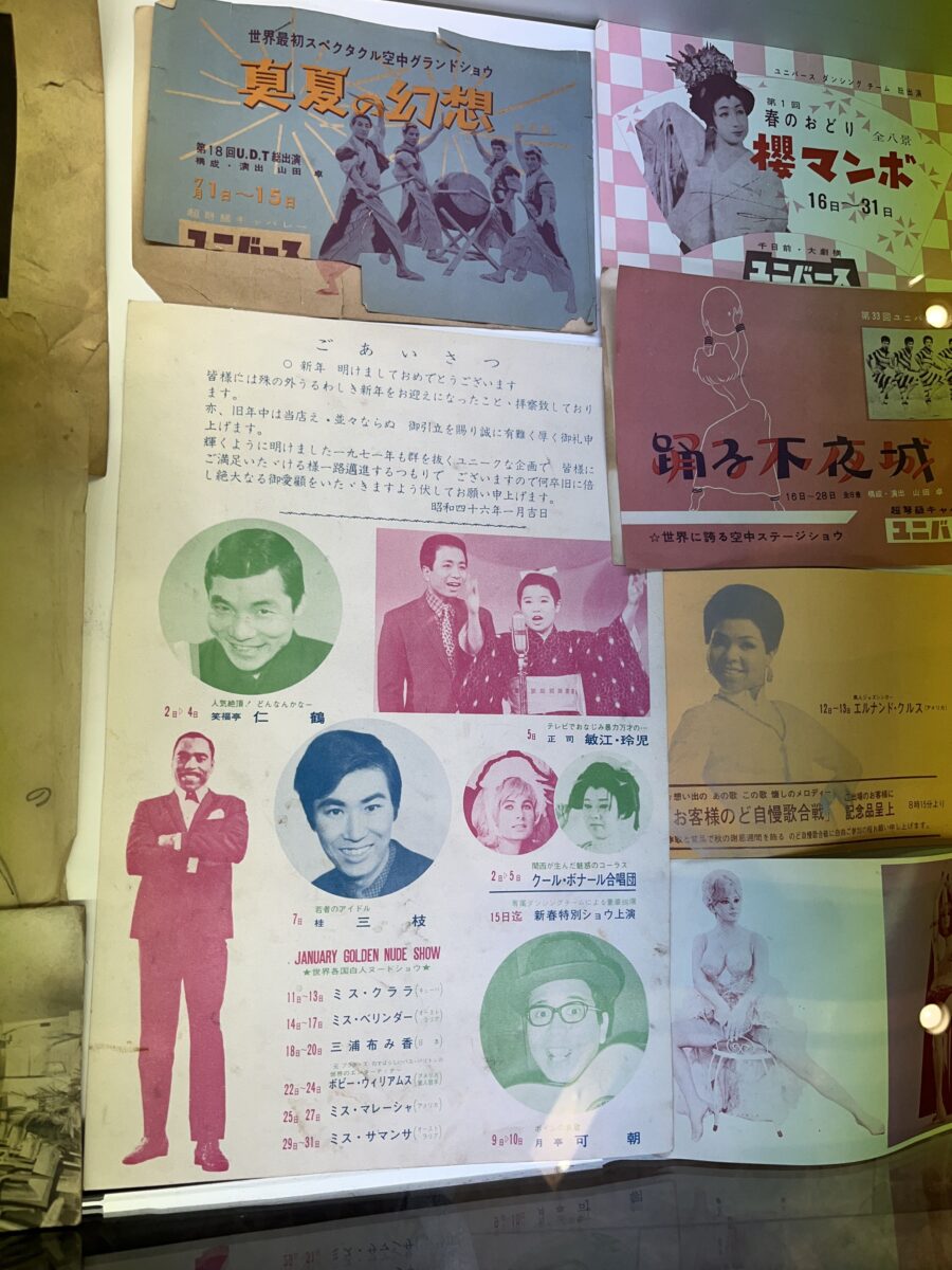 大阪・千日前の伝説的複合施設 味園ユニバースビル の70年にわたる歴史を、その空間ごと“宇宙”として体感できる展覧会です。空間的にはとても狭いのですが、COSMIC LABが集めた歴史資料の展示やDOPPEL(BAKIBAKI / MON)による壁画などが楽しめます。