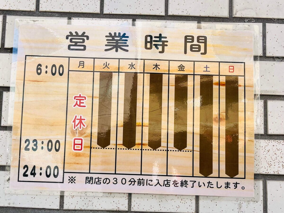 土日:6:00〜24:00(最終受付23:30)