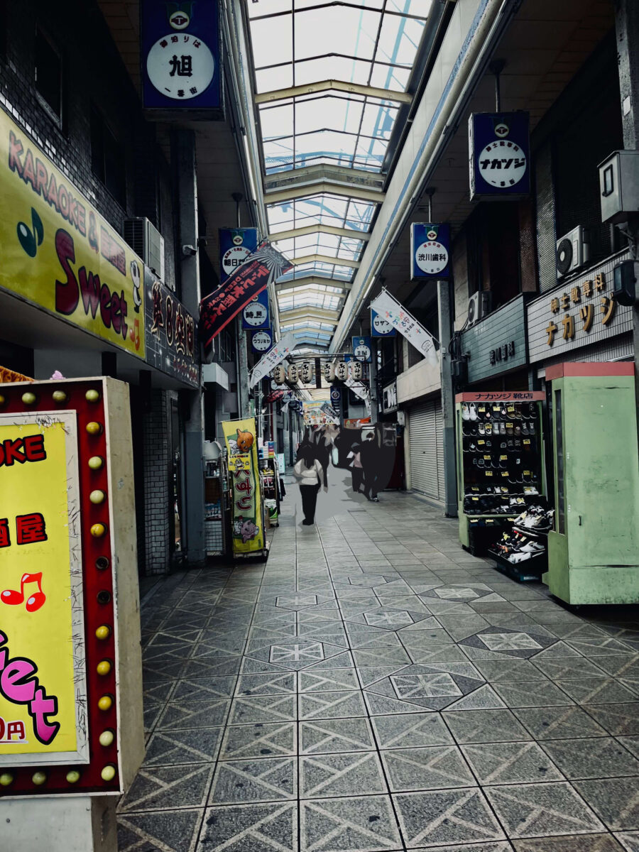 カラオケ屋さんばっかりで、外国人のママのお店にお昼間からおっちゃんたちが歌いに行ってるって感じ。ガラス張りで中が見えるオープンなお店な感じですが、女の私からみると結構異様な光景でした。笑