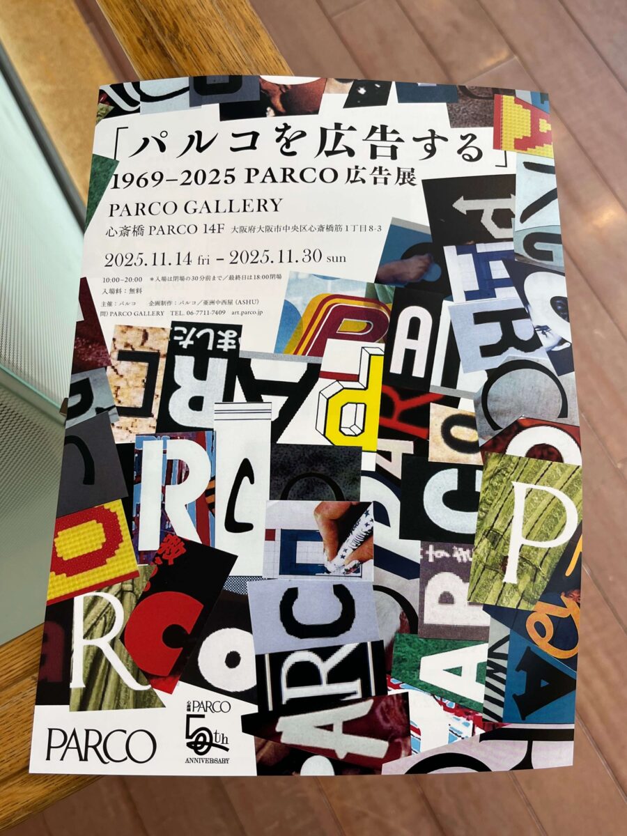 心斎橋PARCOの5周年を記念して開催されている展覧会「パルコを広告する」 1969 – 2025 PARCO広告展 へ行ってきました。パルコの広告、グラフィックでサインはおしゃれでモードなイメージ。有名なデザイナーさんが多く手掛けていて、田舎育ちの私的には、「都会のカッコイイデザイン」!!という印象があります。デザイナーを目指していた私的には憧れでしたね〜