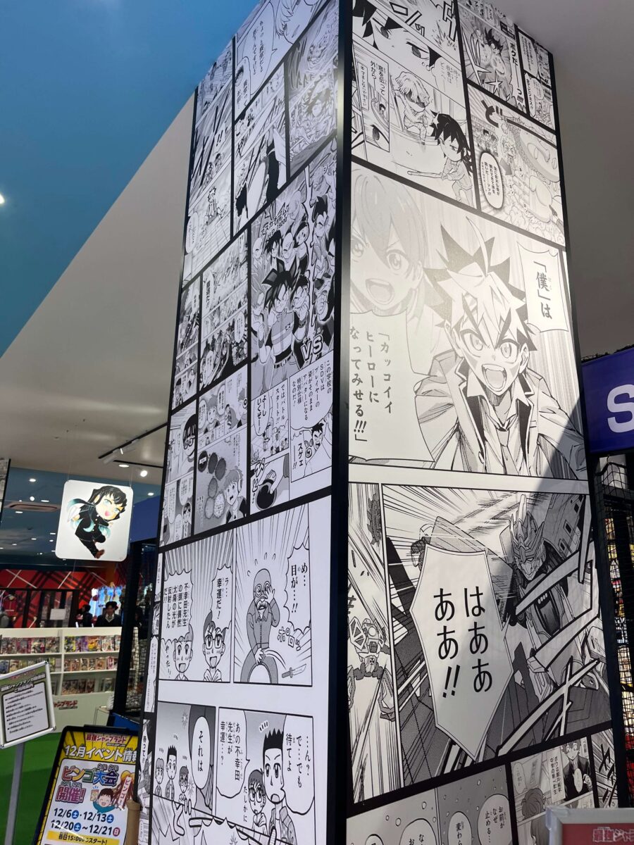 人気キャラクターのパネルや巨大ボード。