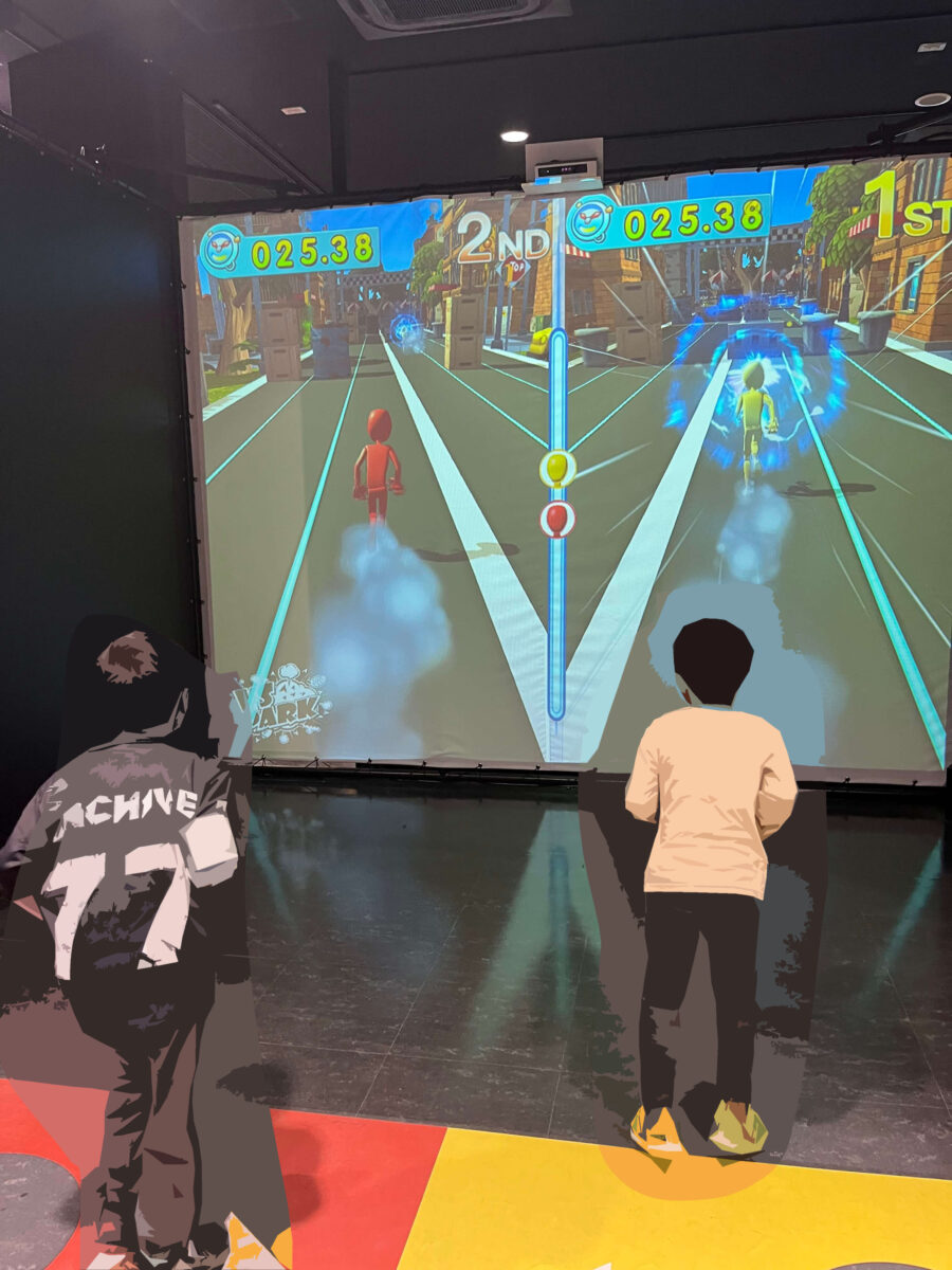 テレビ番組でよくあるようなゲーム遊びができるので、子どもたちも「面白い!!」と言ってはしゃぎ回っていました。